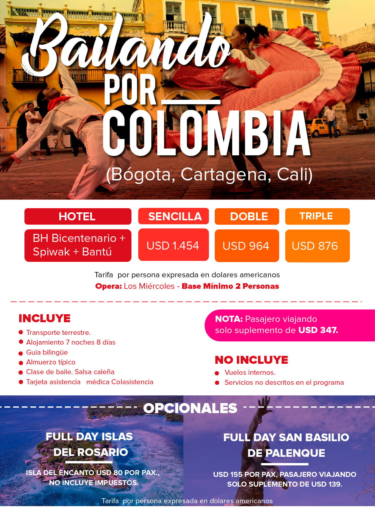 Nota: Pasajero viajando solo paga suplemento de 347 USD